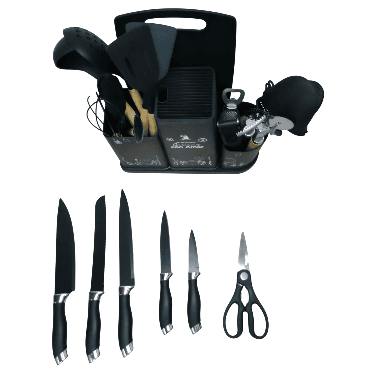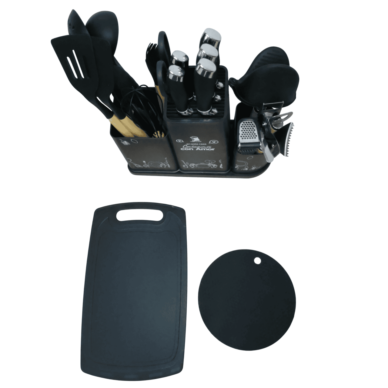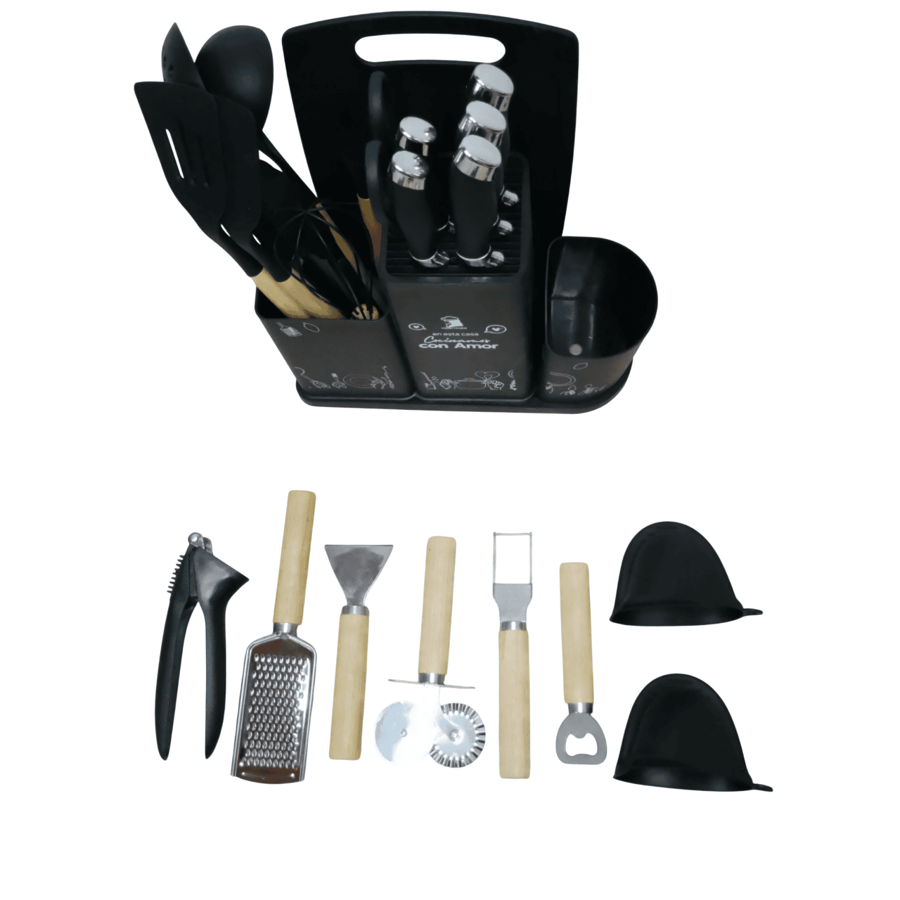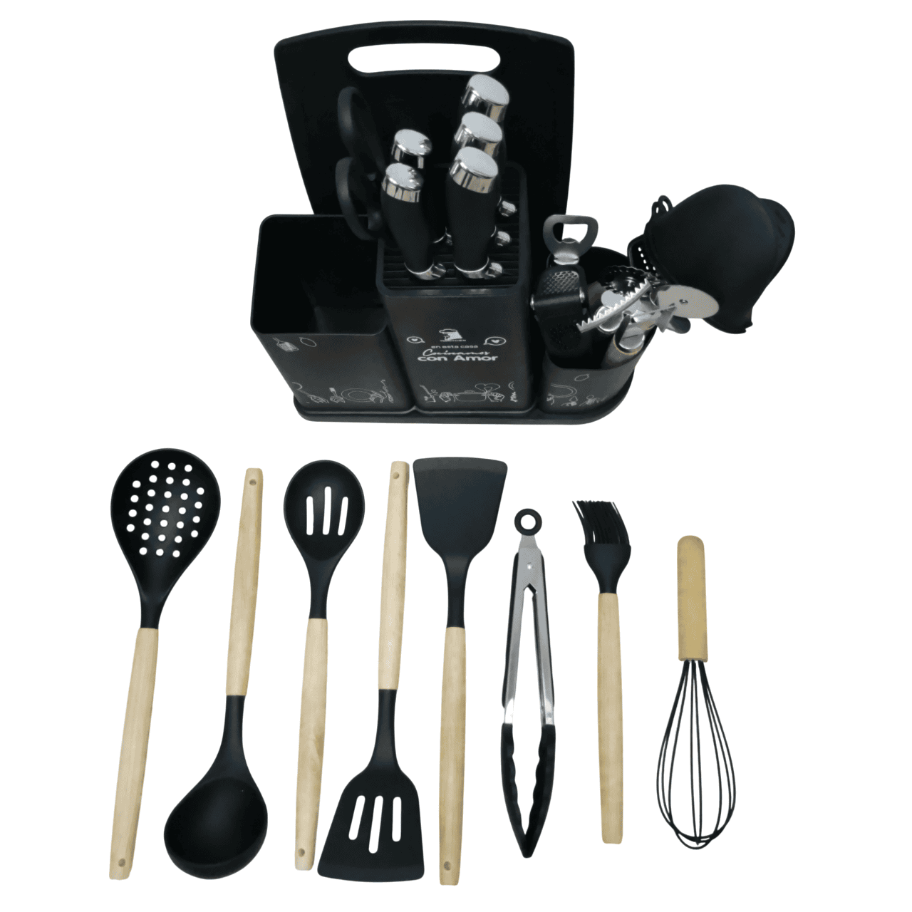 Este juego está diseñado para ofrecerte funcionalidad y durabilidad en cada preparación. Ideal para quienes buscan calidad y seguridad en sus utensilios de cocina, ademas incluye 25 piezas esenciales que cubren todas tus necesidades gastronómicas.