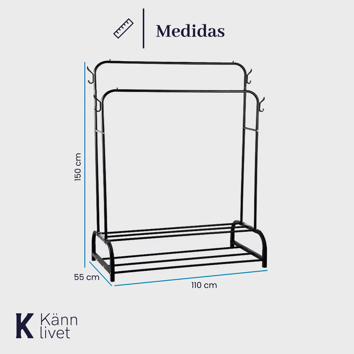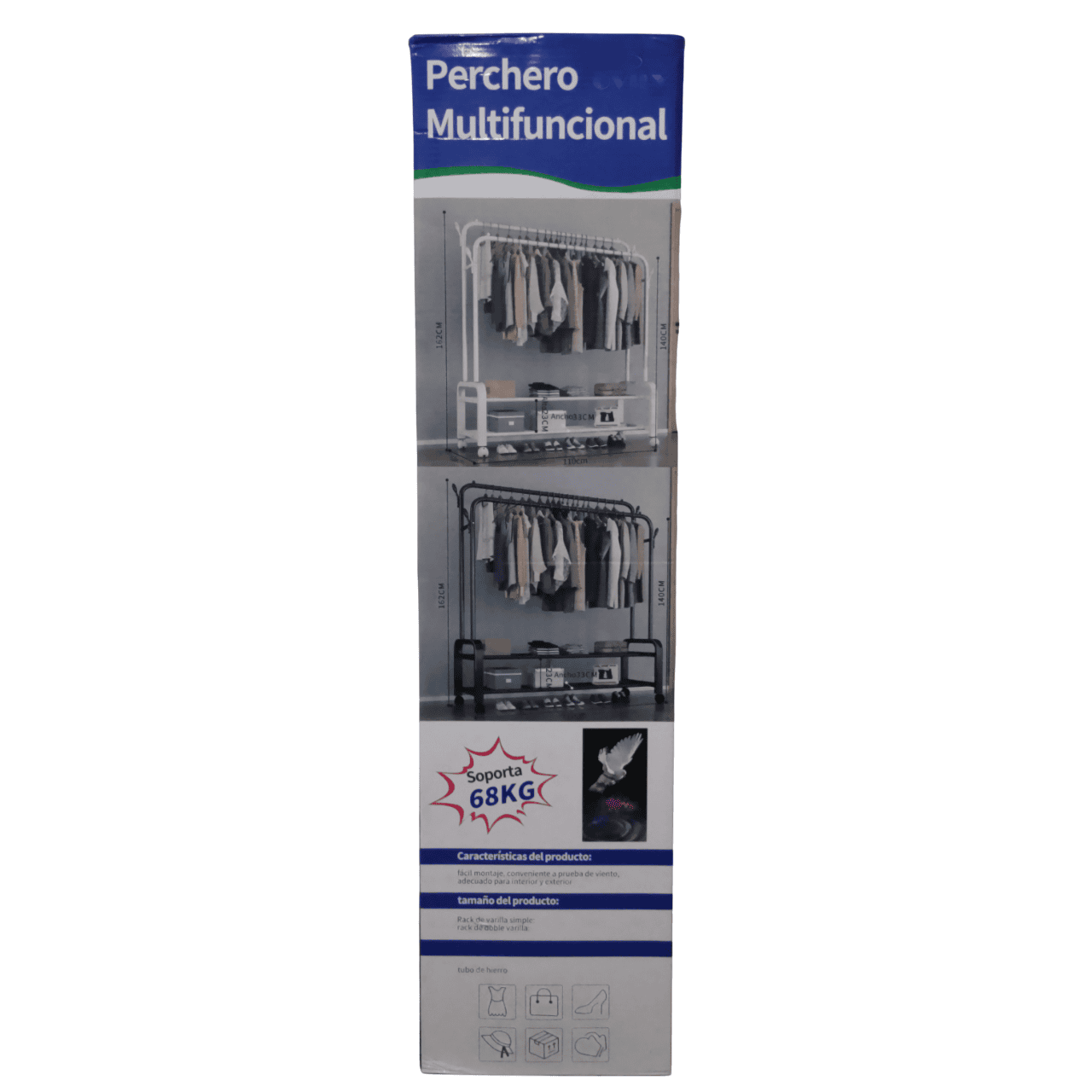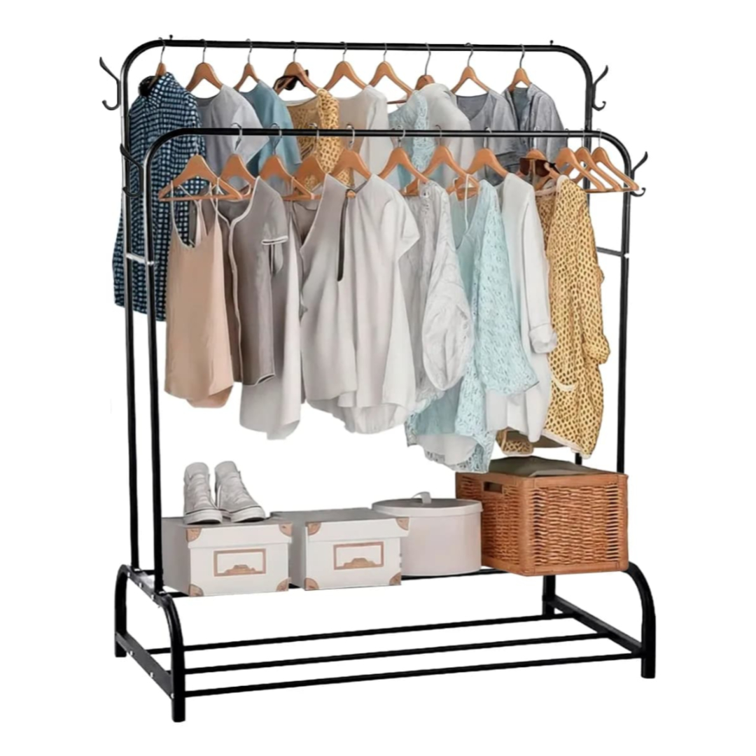 Diseñado para ofrecer una solución práctica y elegante a tus necesidades de almacenamiento, este perchero de metal te brinda un amplio espacio para colgar y secar tu ropa, manteniéndola siempre ordenada y accesible.